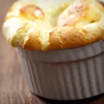 - With an electric mixer in high speed, beat whites until stiff peaks form, about 4 minutes. Using a rubber spatula, fold whites into cheese mixture in three additions. Gently pour soufflé mixture into prepared dish and bake on center rack for 40 to 45 minutes, until a skewer inserted in middle comes out clean and soufflé is completely risen and browned. Serve immediately.