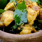 - Remove chicken from marinade with a slotted spoon and add to onion mixture. Stir-fry until chicken is almost cooked through, about 3 minutes.