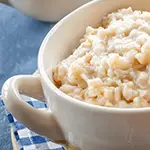 - Prepare oatmeal using 1/2-3/4 cup water and a pinch of salt. The amount of water will depend on how thick you like your oatmeal - more water gives a thinner oatmeal. Stir oatmeal into boiling water. Allow to sit for 2-3 minutes,